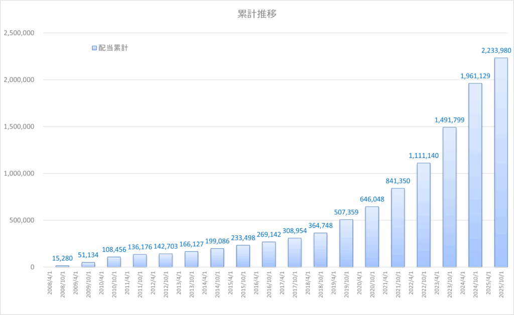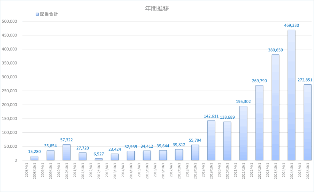 2025年上半期が終わりましたので、上半期の配当金額が確定しました。