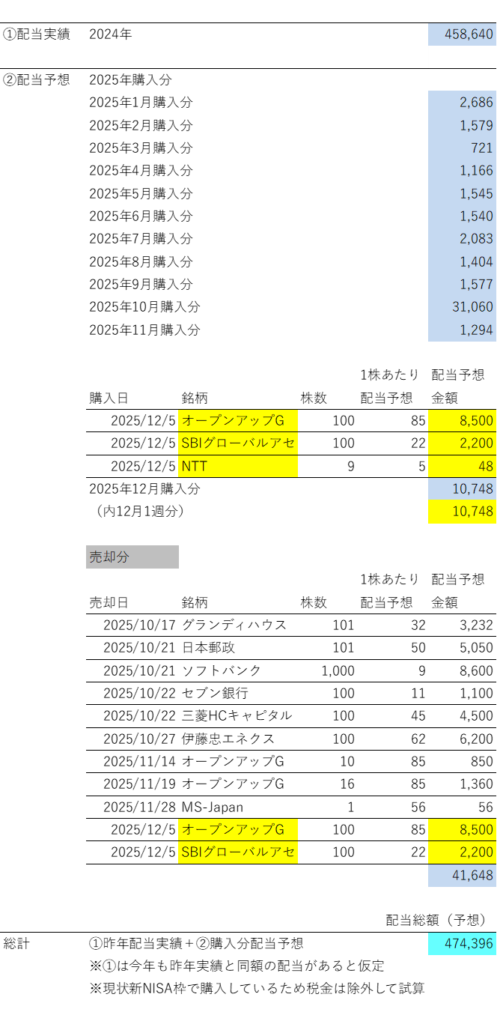 ◆現時点の旧NISA(2021年枠)の状況です。(元々保有、売却、買い戻し)